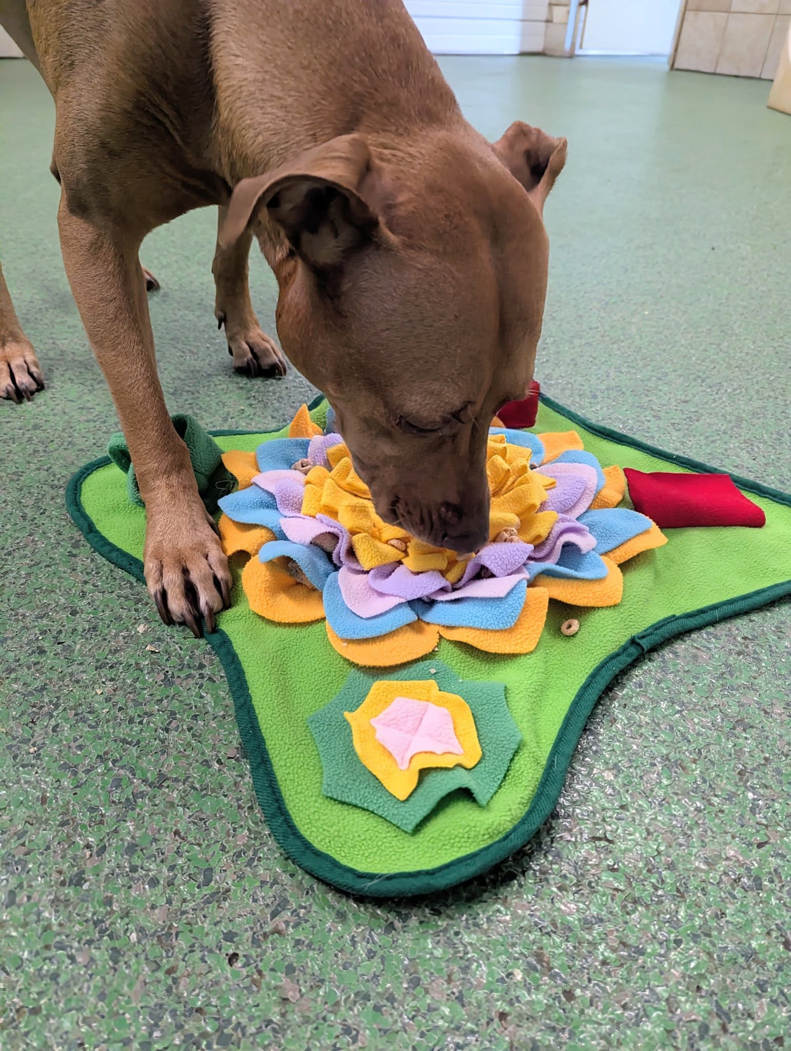 On weekends, dogs get extended play sessions in the morning and evening, in addition to regular breakfast and dinner, potty breaks, walks, and play breaks.